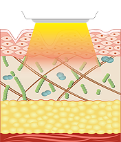 光は肌表面の色に反応するため、肌の奥まで届けることができませんが、高周波を併用する