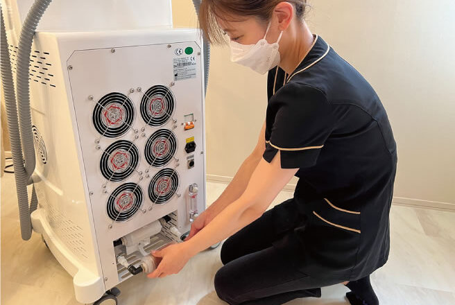 子供でも痛くない無痛脱毛。産毛から濃い毛まで無痛で抜けるハイブリッド脱毛。大容量電源とパワフル冷却が実現させました。 200V電源と大容量キャパシタで、安定出力で連続照射が可能です。